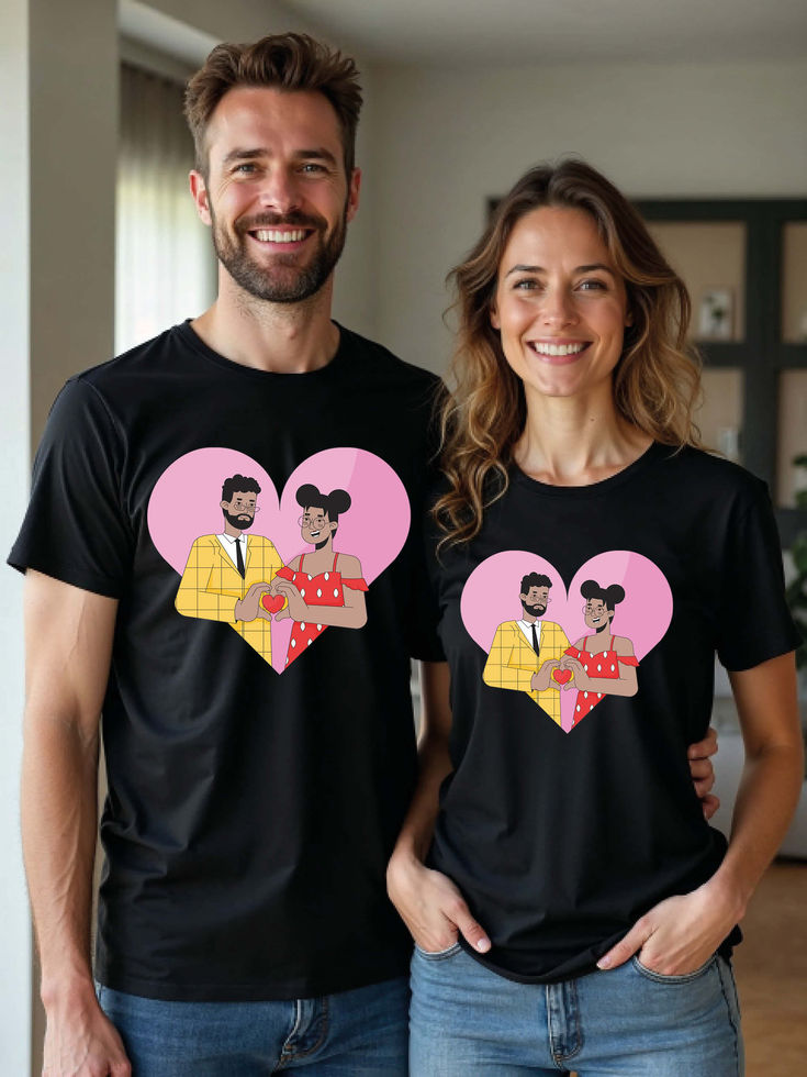 Stylish Illustration Couple T-Shirts - Romantic Printed Matching Set | Shop Now