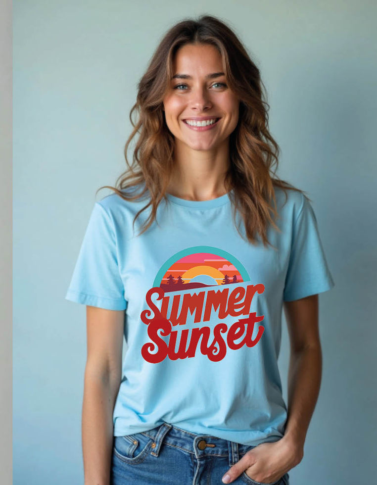 Summer Sun Set Stylish Printed Tee for Adults & Kids