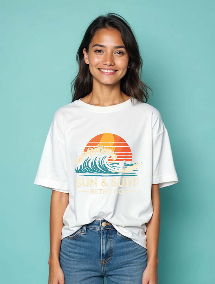 sun & surf retro Cool Aesthetic Unisex Oversized Drop Shoulder Tee | Premium
