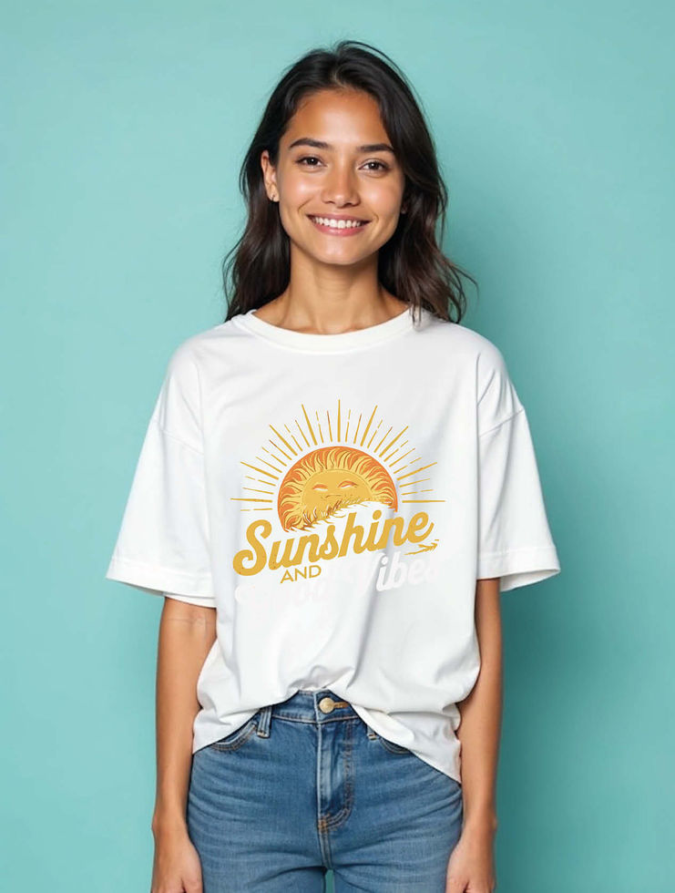 sunshine and good vibes Casual Unisex Oversized Drop Shoulder Tee for Men & Wome
