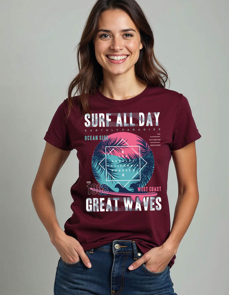 surf all day great waves Fashion Graphic T-Shirt for Boys, Girls, Men & Women