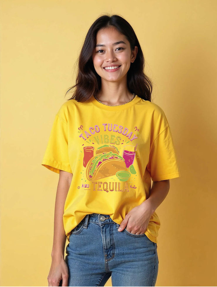 taco tuesday vibes tequila Typography Unisex Drop Shoulder Oversized T-Shirt