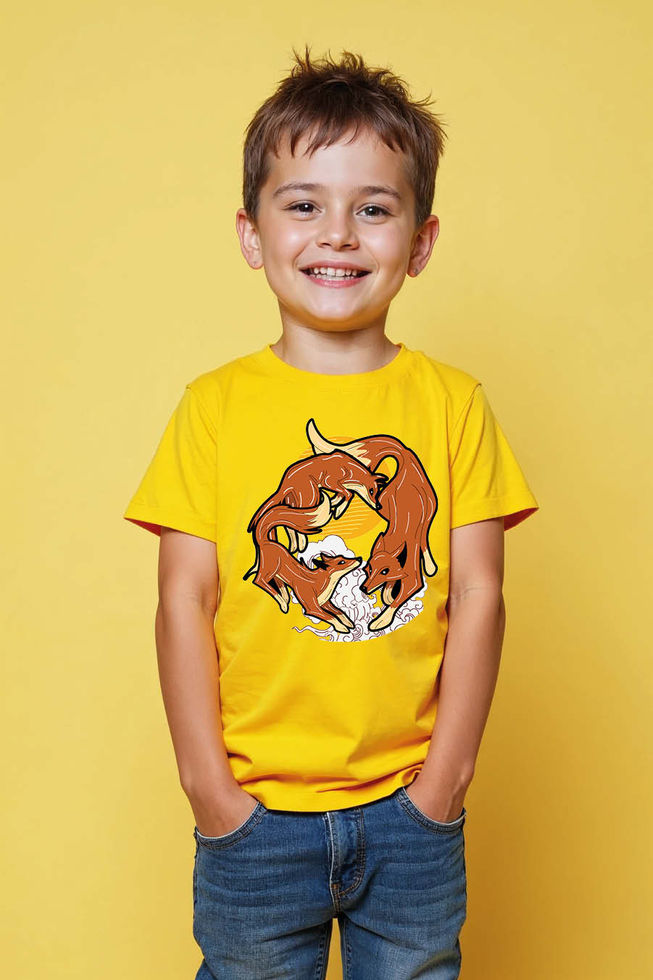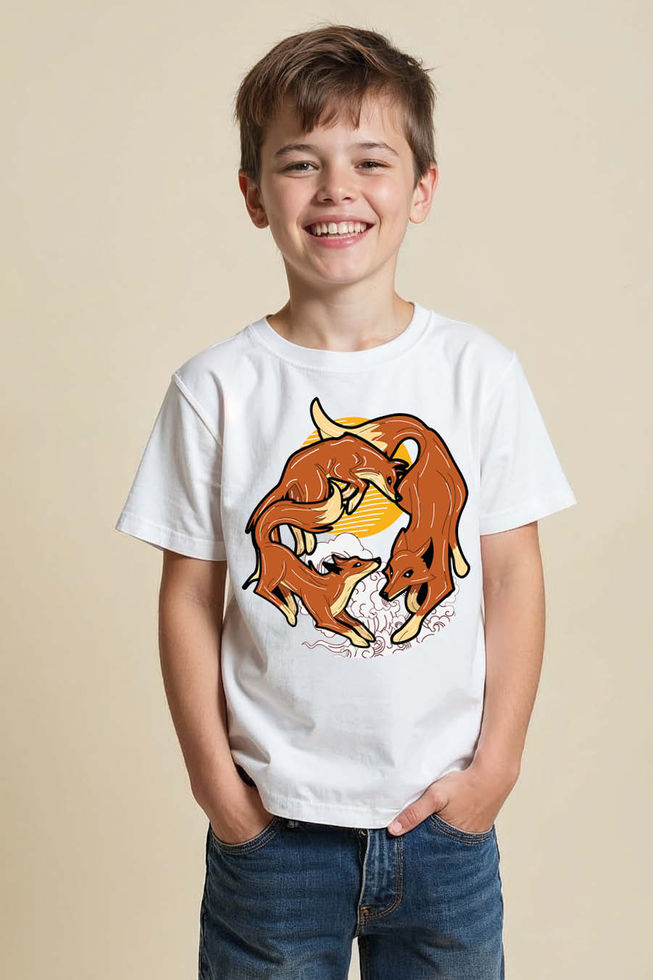 Three Foxes Moon Dance Trendy Unisex Kids Graphic Tee – Design Print Design