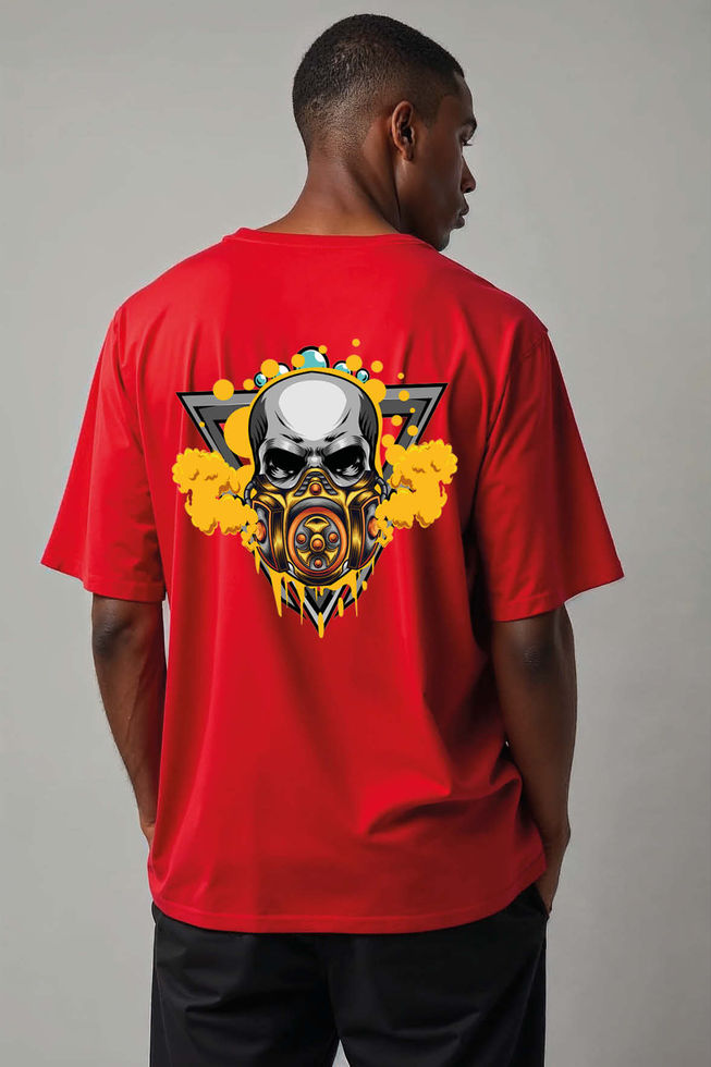 Toxic Gas Mask Skull Urban Unisex Drop Shoulder Oversized T-Shirt