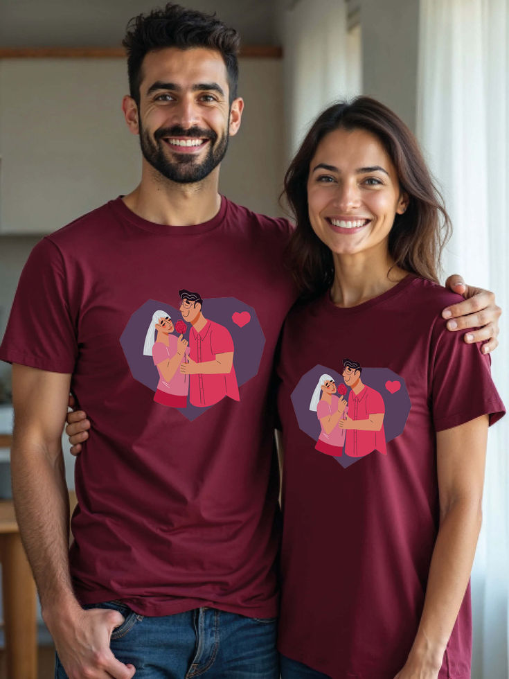 Try the premium quality pre-shrunk Couple T shirts.