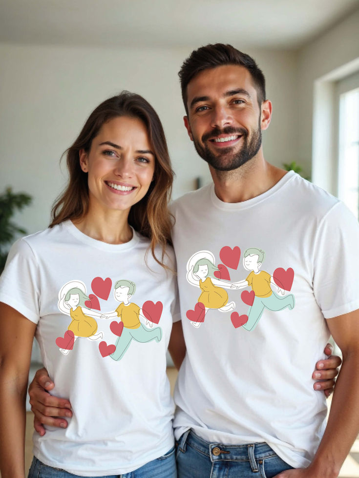 Trendy Illustration Couple T-Shirts - Stylish Printed Outfit | Best Price