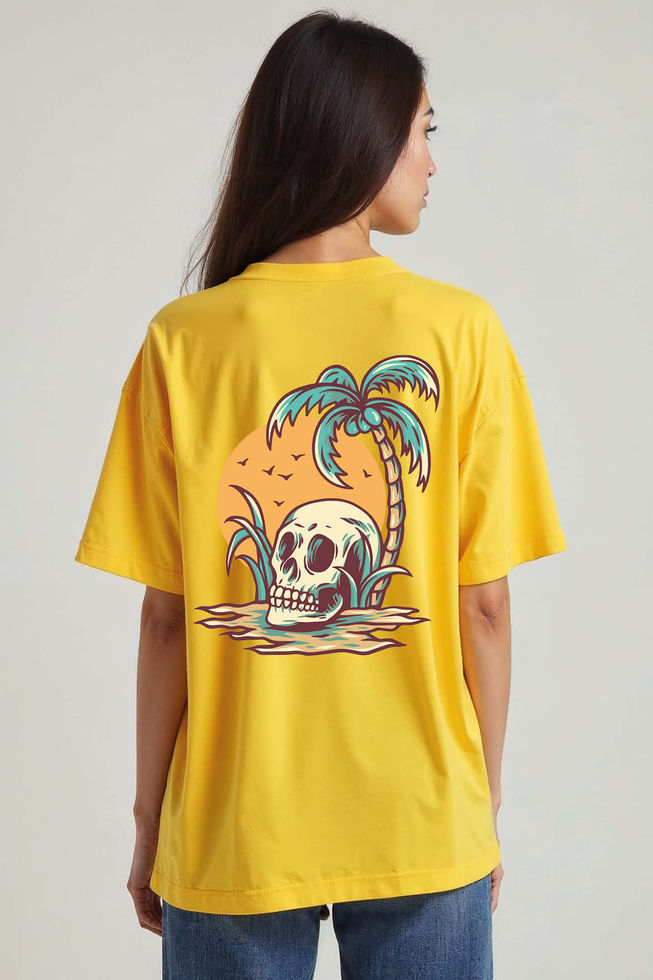 Tropical Skull Island Vintage Unisex Drop Shoulder Oversized T-Shirt