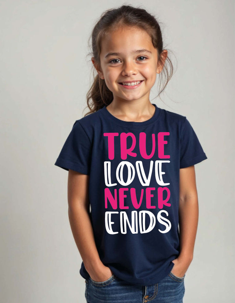 true love never ends Casual Cotton Printed T-Shirt for Adults & Kids – New