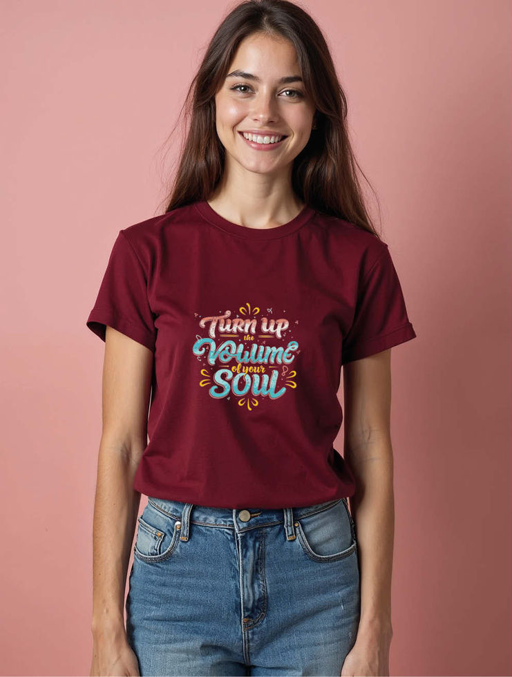 turn up the volume of your soul Stylish Women’s Printed Graphic T-Shirt