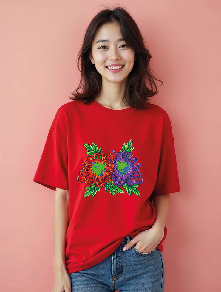 Twin Chrysanthemum Heart Premium Unisex Drop Shoulder Oversized T-Shirt