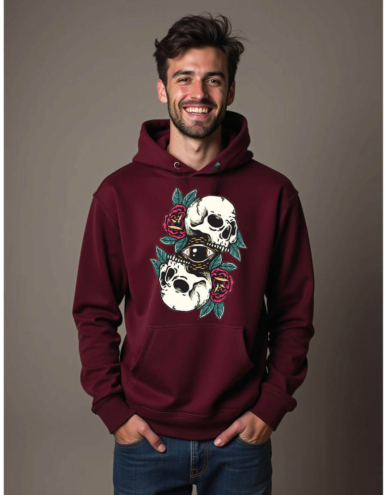 two rose skull Men’s Streetwear Graphic Printed Hoodie – Premium Quality Fabric