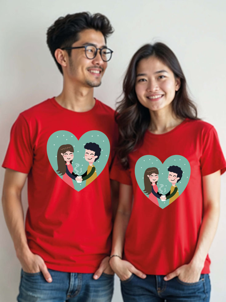 Valentine’s Cartoon Couple Matching Tee Lovers Edition – Shop Now