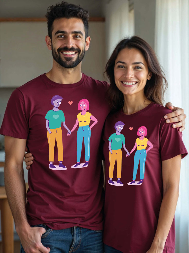 Try the premium quality pre-shrunk Couple T shirts.