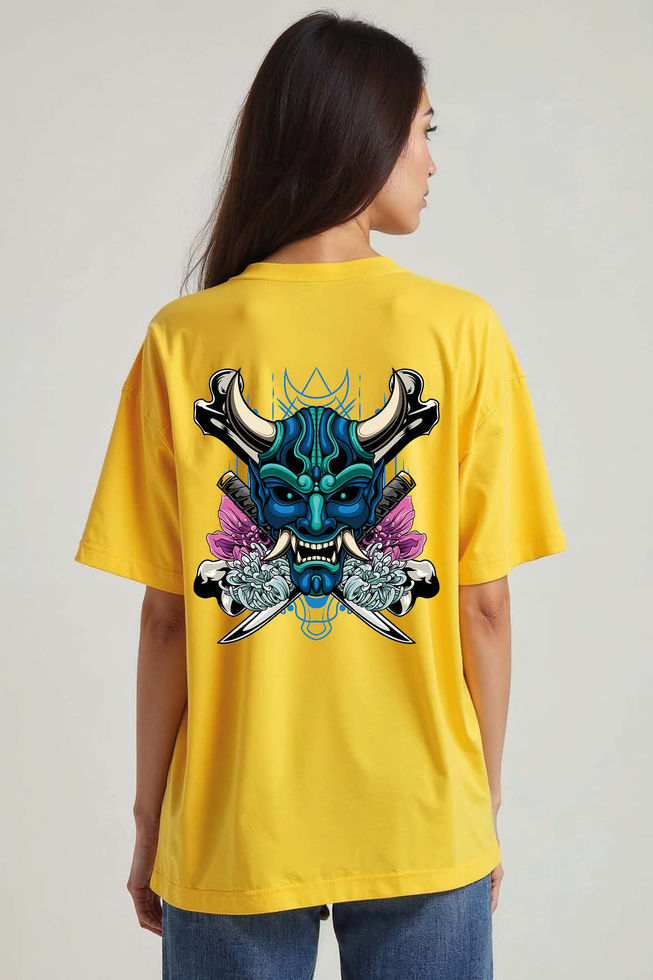 Vibrant Oni Demon Mask Cool Unisex Drop Shoulder Oversized T-Shirt