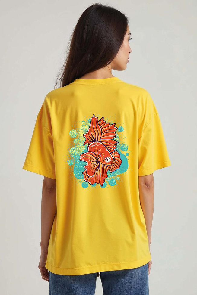 Vibrant Orange Betta Unisex Oversized Drop Shoulder T-Shirt for Men & Women