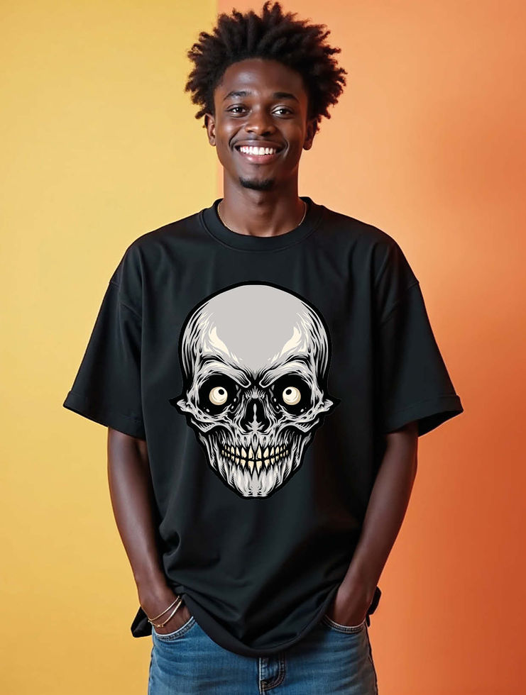 Vicious Skull Casual Unisex Drop Shoulder Oversized Tee | Aesthetic Style