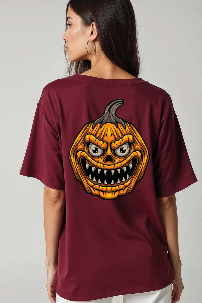 Vicious Teeth Jack Lantern Casual Unisex Drop Shoulder Oversized T-Shirt