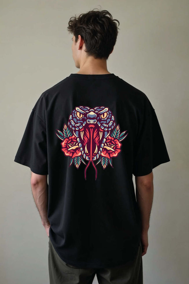Viper and Roses Tattoo Casual Unisex Drop Shoulder Oversized T-Shirt