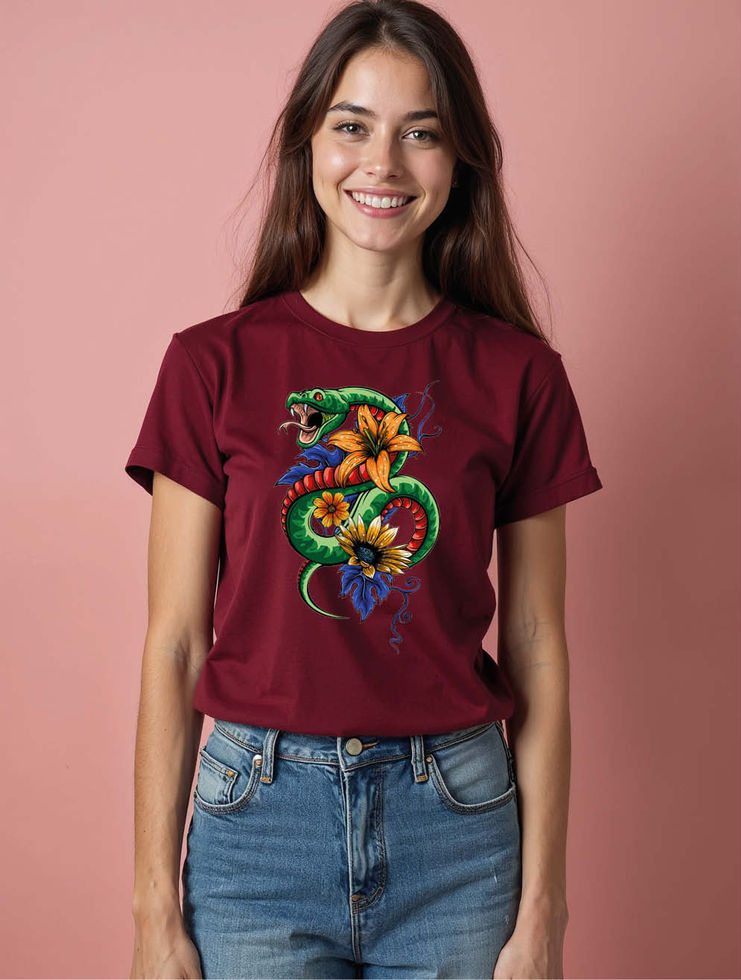 Viper Bloom Tattoo Casual Women’s Printed Graphic Streetwear T-Shirt – Low Price