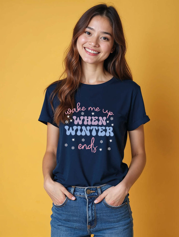 wake me up when winter ends Trendy Women’s Printed Graphic Streetwear T-Shirt