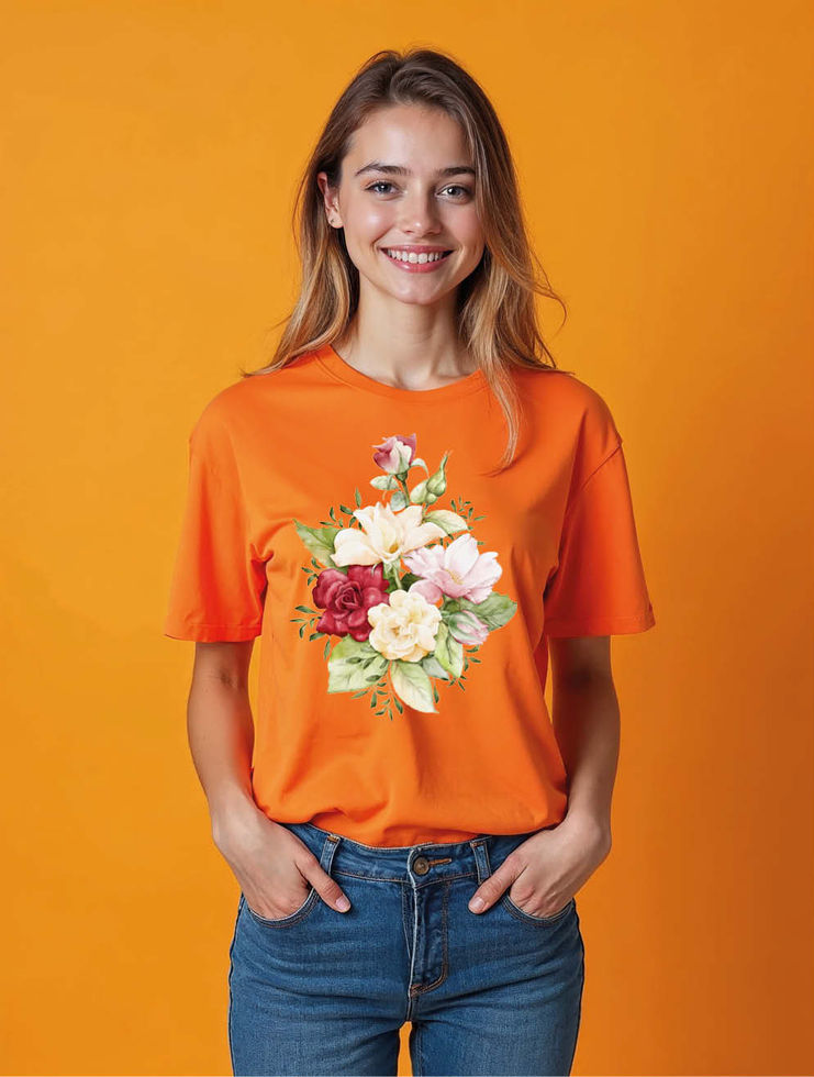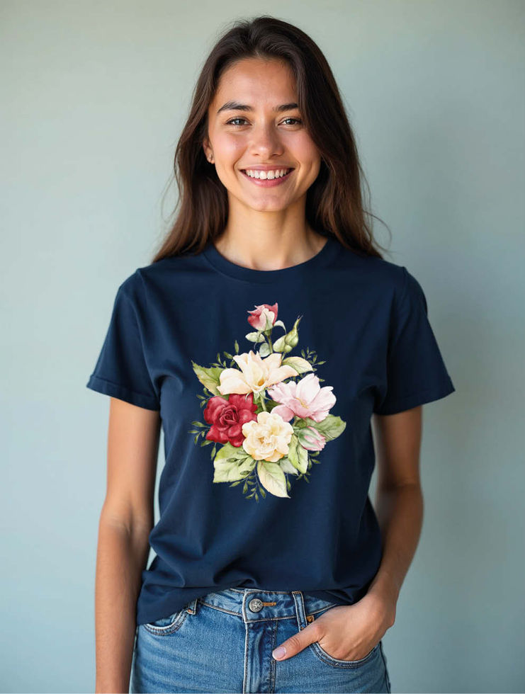 Watercolor Rose Bouquet Classic Women’s Printed Graphic Streetwear T-Shirt – Buy