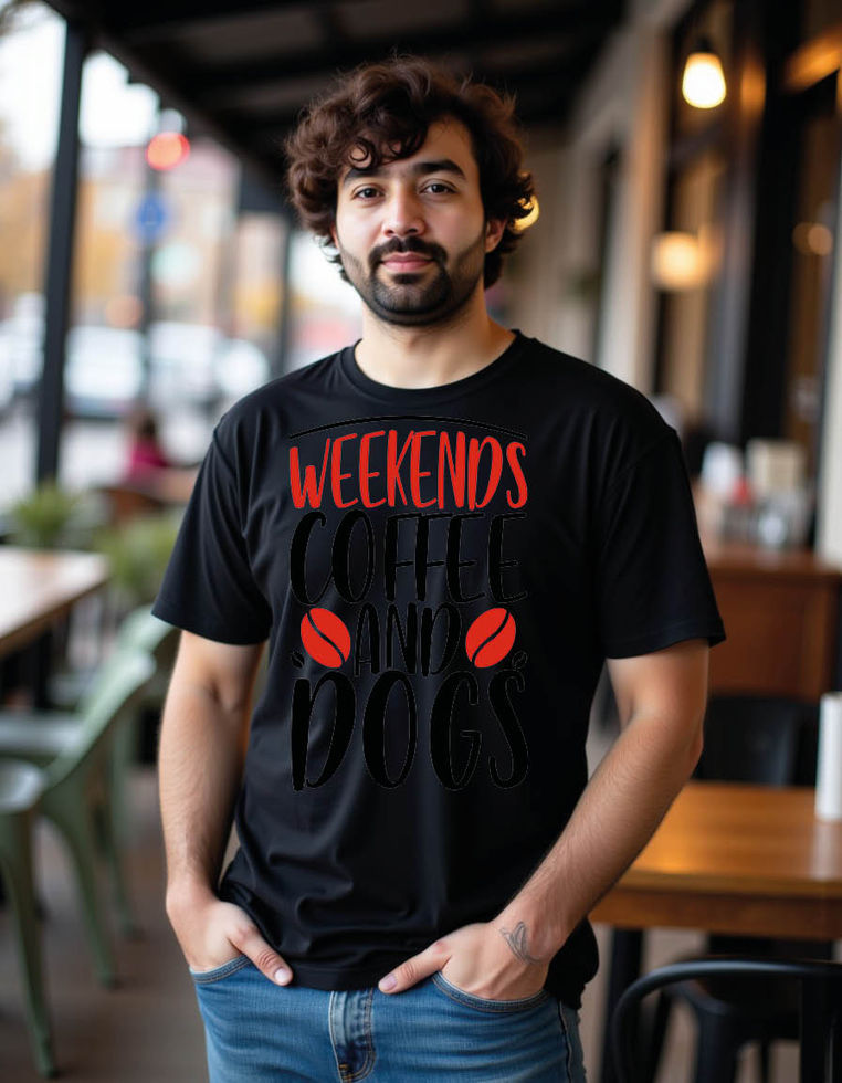 weekends coffee dogs funny coffee dog coffee mens printed graphictshirt