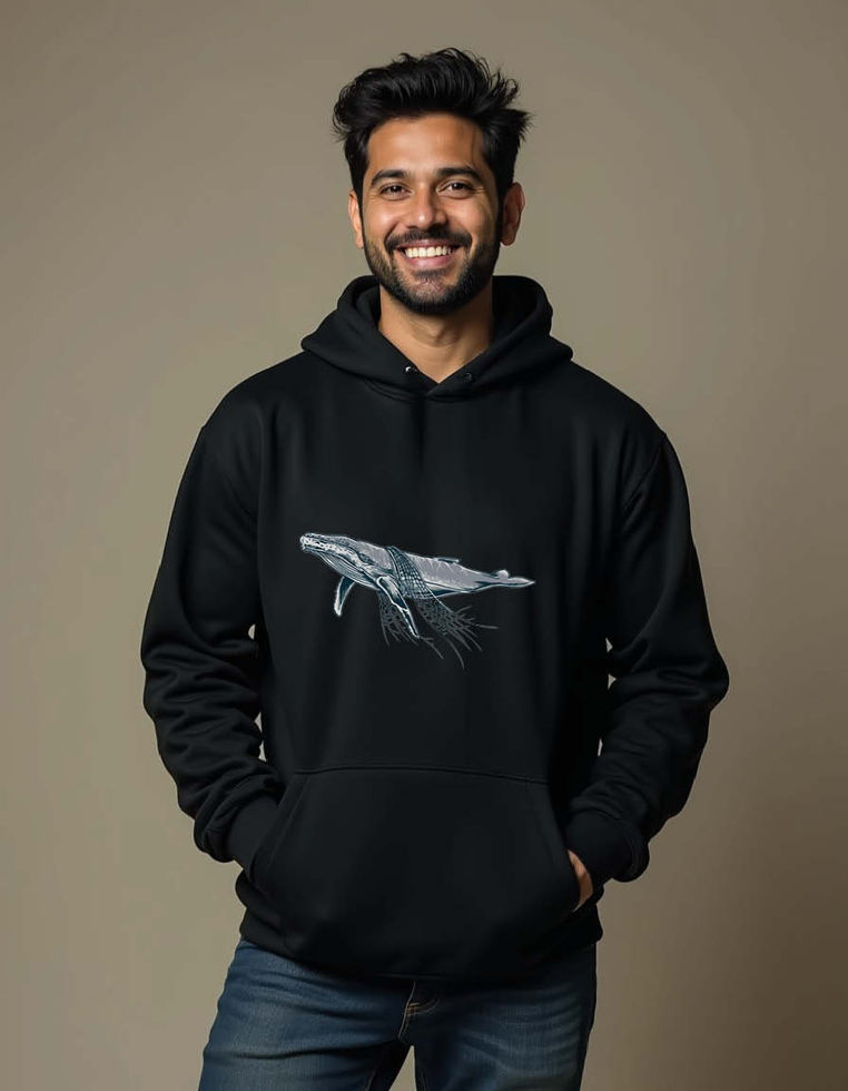 whales and net pollution Stylish Unisex Printed Graphic Hoodies For Men & Women