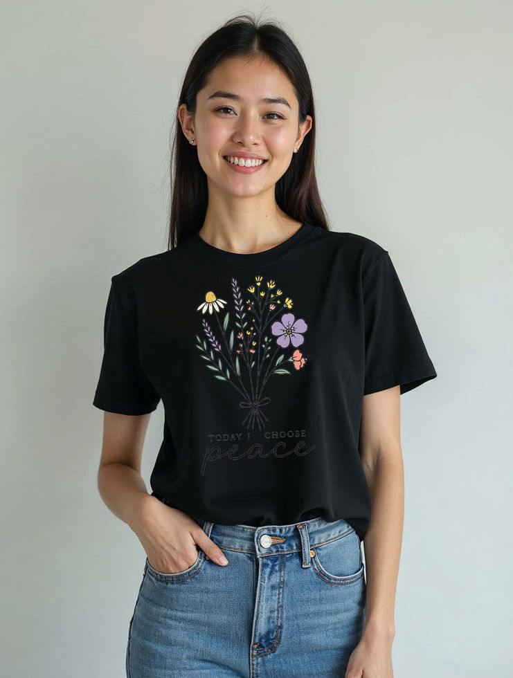 Wildflower Bouquet with "Grow Positive Thoughts" Quote Trendy Women’s T-Shirt