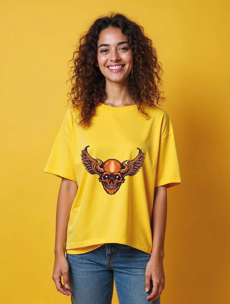 Winged Fiery Skull Premium Unisex Oversized Drop Shoulder Tee For Men & Women