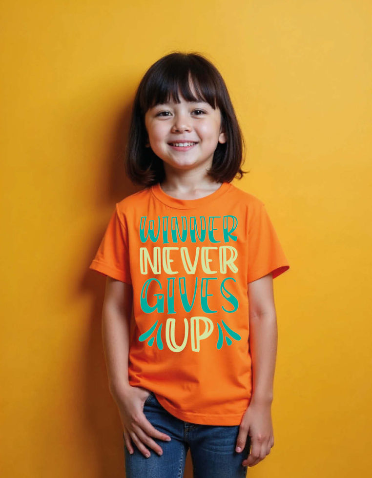 winner never give up Round Neck Graphic Tee for Men, Women & Children