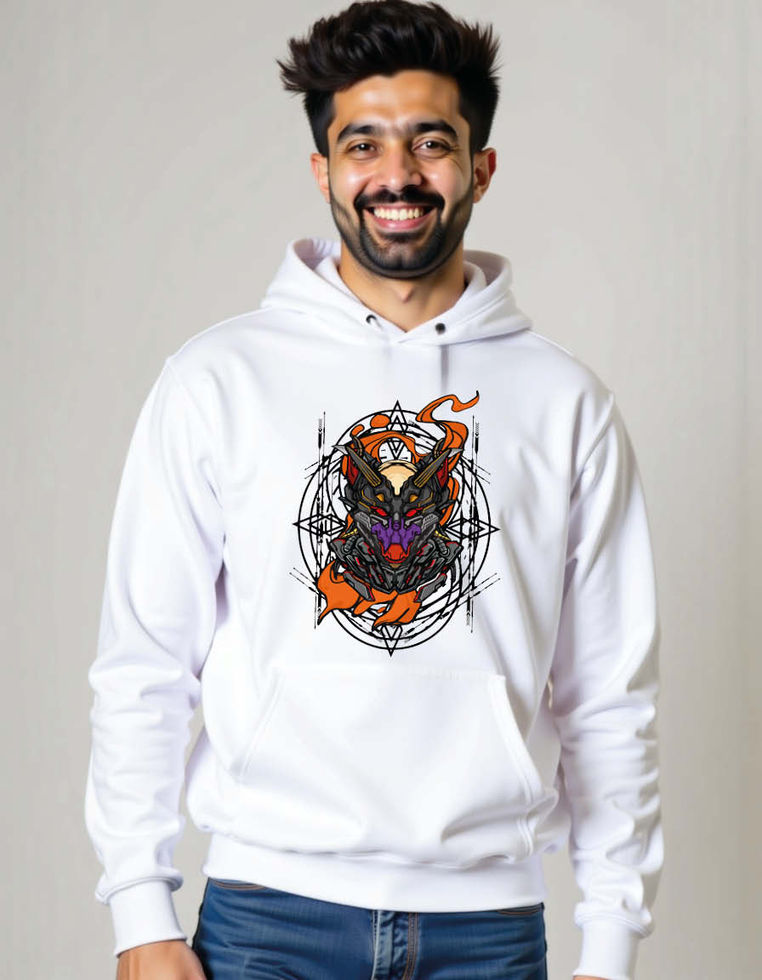 wolf skull mecha Stylish Unisex Printed Graphic Hoodie For Men & Women